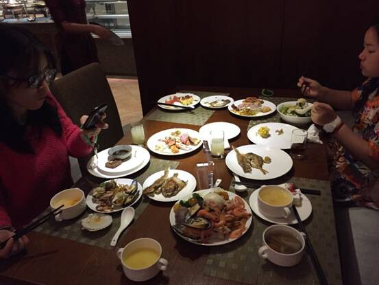 泡了一下午的溫泉大家也餓了吧,走……….我們?nèi)コ载S盛的大餐吧!隨意吃,想吃多少就吃多少。(就在溫泉二樓)