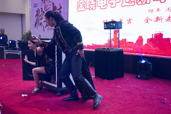 晚宴開始,專業(yè)表演團(tuán)隊帶來了舞蹈、魔術(shù)、雜技、花式調(diào)酒等節(jié)目,精彩紛呈。推出的啤酒大賽、坐氣球比賽、猜答游戲、筷子運(yùn)鑰匙鏈等游戲不僅給大家?guī)砹藲g聲笑語,同時也讓同事之間彼此的心更加貼近。隨著三等獎、二等獎、一等獎、特等獎、驚喜獎的陸續(xù)揭曉,讓年會的氣氛到達(dá)了沸點(diǎn)。迎新年會公司領(lǐng)導(dǎo)與員工親情互動讓歌聲、掌聲、歡呼聲一直在會場上蕩漾,呈現(xiàn)出金曉電子這個大家庭的歡樂和諧。