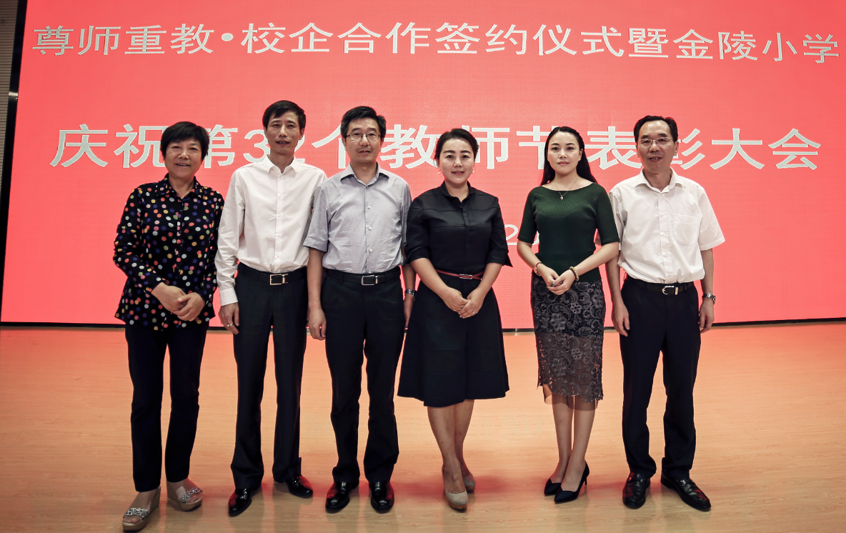 9月20日下午4時(shí),金陵中學(xué)仙林分校小學(xué)部二樓報(bào)告廳舉行了 “尊師重教?校企合作簽約儀式暨金陵中學(xué)仙林分校小學(xué)部慶祝第32個(gè)教師節(jié)表彰大會(huì)”。南京市棲霞區(qū)委副書記兼代區(qū)長黎輝、棲霞區(qū)委副書記陳波,棲霞區(qū)人大常委會(huì)民僑委主任吳雙龍、棲霞區(qū)教育局局長徐觀林、棲霞區(qū)教育工委書記王守云、棲霞區(qū)教育局副局長葛德華,以及小學(xué)東片教育共同體學(xué)校領(lǐng)導(dǎo)親臨現(xiàn)場,出席大會(huì)并為杰出教師代表頒發(fā)獎(jiǎng)狀。