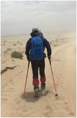 “人,需要一種氣魄,一種堅持,一種水滴石穿的信仰!跋涉在茫茫大沙漠,第一次感受到無處循形的靈與肉的煎熬,無堅定信念,很難堅持到底,無強健體魄,就無法承載突破負荷的沉重壓力。在這種巨大到讓人感到窒息的自然威嚴之下,唯有拋開一切不安和雜念,堅定地邁向遠方,一步一個腳印,才能完成抵達。”