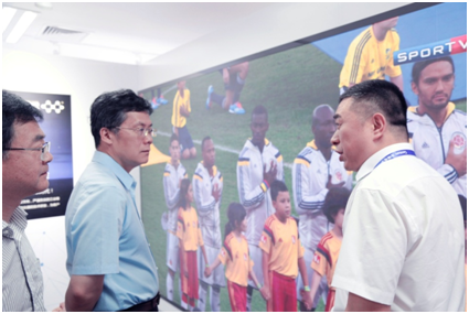 進入展覽室,林主任一行對金曉電子的業(yè)務(wù)領(lǐng)域表現(xiàn)出濃厚的興趣。金曉電子董事會秘書丁華平給林主任一行人從金曉電子的起步到快速發(fā)展做了詳細介紹。