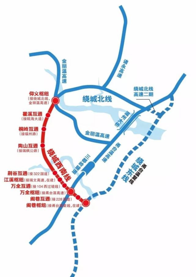 溫州繞城高速西南線是浙江省高速公路總體布局規(guī)劃“兩縱兩橫十八連三繞三通道”公路主骨架中“一繞”, 作為未來溫州閉合式繞城高速公路圈中的重要一環(huán),繞城西南線將于繞城高速公路北線一期、二期以及甬臺溫高速復(fù)線一起,串聯(lián)起溫州城市主要交通干線,共同構(gòu)成未來溫州“半小時(shí)交通圈”。