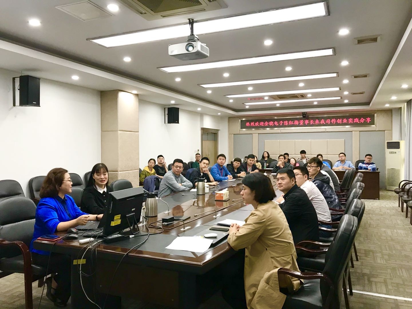 交流會(huì)上,金曉電子董事長(zhǎng)陳紅梅女士與大家分享了金曉電子的創(chuàng)業(yè)實(shí)踐經(jīng)驗(yàn),介紹了金曉電子的企業(yè)簡(jiǎn)介、企業(yè)文化、企業(yè)發(fā)展歷程、企業(yè)經(jīng)營(yíng)理念以及社會(huì)公益等多方面內(nèi)容,并共同觀看了《鷹的重生—讓生命更精彩》的記錄短片。
