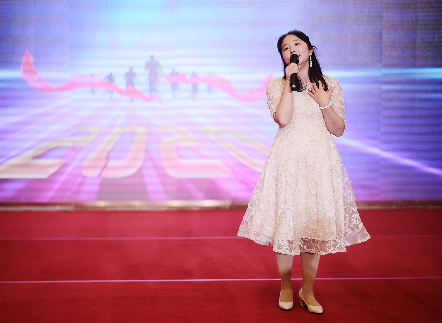 在一片熱烈的掌聲中,董事長陳紅梅發(fā)表新春致辭,宣布年會晚宴正式開始。
