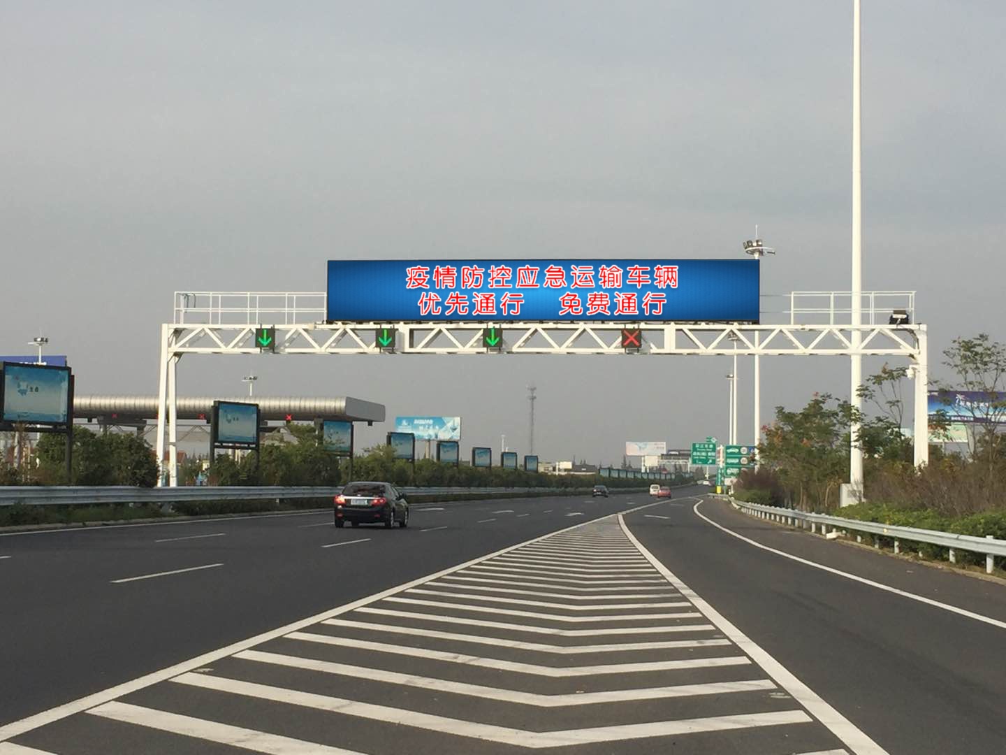 首先是疫情防控的宣傳:通過可變信息情報(bào)板信息發(fā)布終端,及時(shí)有效的向駕乘人員發(fā)布江蘇交通控股規(guī)定的《疫情防范工作宣傳語》,根據(jù)設(shè)備的距離和尺寸調(diào)整滾動(dòng)播放的時(shí)差和效果,最高效的傳遞政策精神,讓更多的駕乘人員引起重視和關(guān)注。
