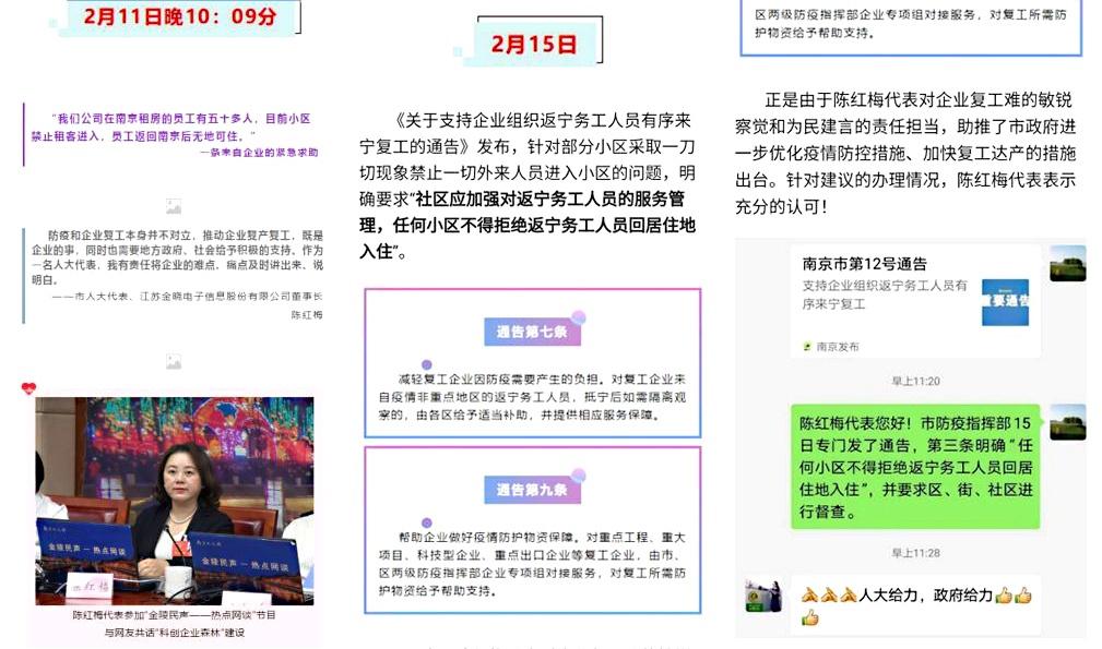 南京市政府對該建議非常重視,經(jīng)研究后,于2月15日和18日,先后發(fā)布《關(guān)于支持企業(yè)組織返寧務(wù)工人員有序復(fù)工的通知》(第12號)和《關(guān)于優(yōu)化疫情防控措施加快復(fù)工達(dá)產(chǎn)的通知》(第13號),及時回應(yīng)了疫情防控期間企業(yè)復(fù)工最為關(guān)心的用工短缺、職工返崗、防疫保障等困難,也實實在在的為企業(yè)的發(fā)展提供了非常大的幫助,解決了企業(yè)的現(xiàn)實困難。