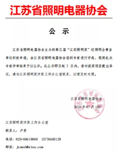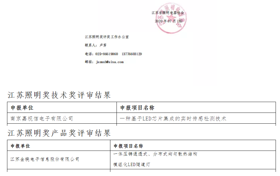 金曉電子、嘉視信獲得“第三屆江蘇照明獎”