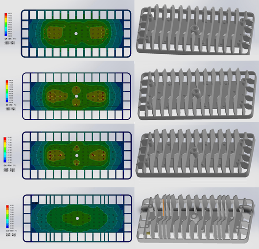 金曉電子的“一體壓鑄通透式、分布式均勻散熱結(jié)構(gòu)模組化LED隧道燈”,采用高導(dǎo)熱鋁材一體化壓鑄結(jié)構(gòu)、滿足聲子共振的分布式鰭形結(jié)構(gòu)和鏤空通透式散熱結(jié)構(gòu)設(shè)計相結(jié)合,協(xié)同提升熱傳導(dǎo)和對流效率,便于快速導(dǎo)出光源熱量,降低光衰。