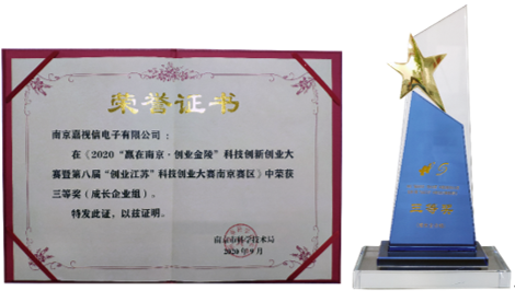 金曉電子所屬嘉視信公司榮獲2020“贏在南京 創(chuàng)業(yè)金陵”科技創(chuàng)新創(chuàng)業(yè)大賽三等獎(jiǎng)