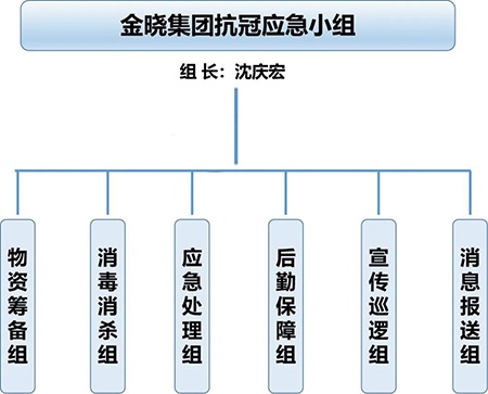 疫情就是命令,防控就是責(zé)任。在疫情防控的關(guān)鍵時(shí)期,金曉電子時(shí)刻不忘回報(bào)社會(huì),在疫情防控中主動(dòng)作為。自新冠疫情發(fā)生以來,金曉集團(tuán)總經(jīng)理沈慶宏帶領(lǐng)大家再次迅速成立“金曉集團(tuán)抗冠應(yīng)急小組”,下設(shè)防疫小組、宣傳巡邏組、廠區(qū)消殺組、應(yīng)急處理組、后勤保障組、信息報(bào)送組等六大小組,建立企業(yè)內(nèi)部疫情防控管理體系,明確責(zé)任人及工作職責(zé),制定疫情防控應(yīng)急預(yù)案和工作措施。同時(shí)要求集團(tuán)內(nèi)以部門為單位,全員線上學(xué)習(xí),反復(fù)宣貫逐級(jí)落實(shí),實(shí)現(xiàn)共同抗疫。