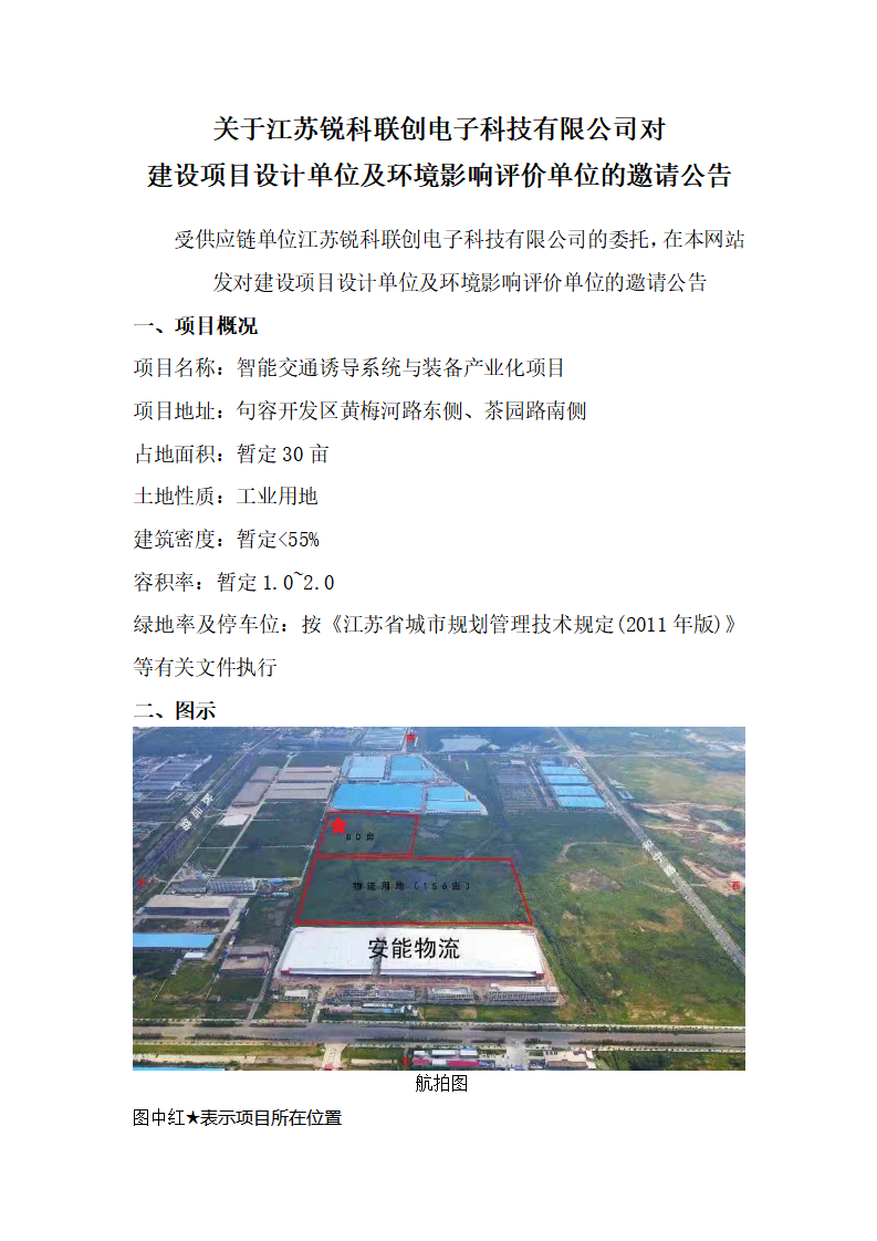 關(guān)于江蘇銳科聯(lián)創(chuàng)電子科技有限公司對建設(shè)項目設(shè)計單位及環(huán)境影響評價單位的邀請公告