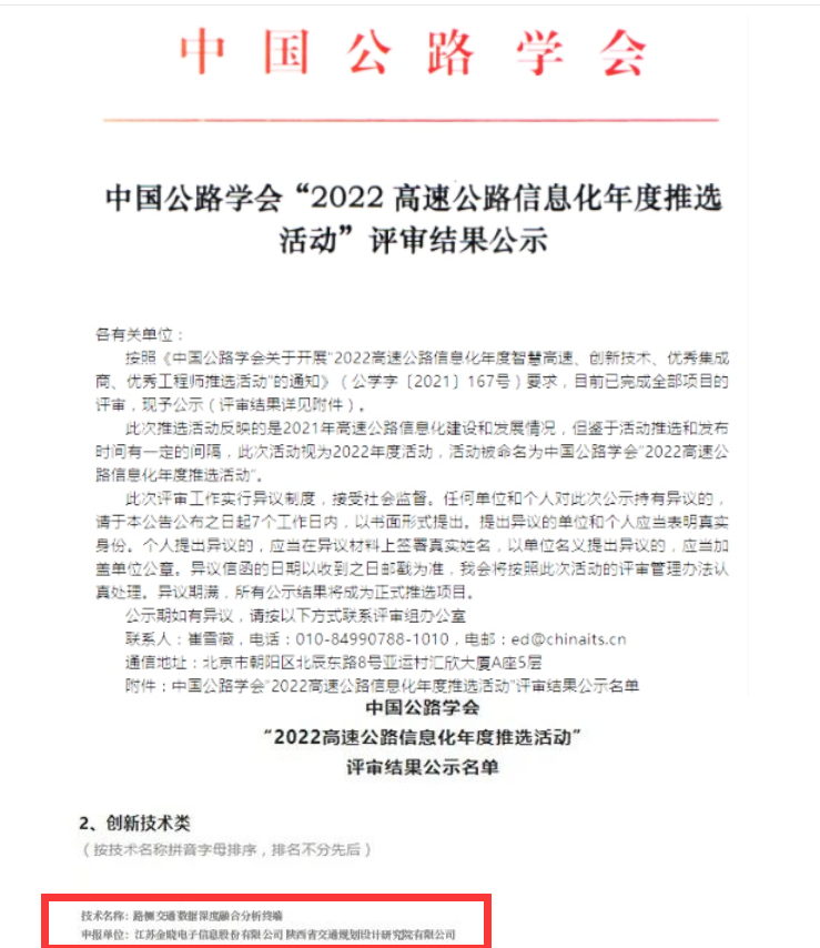 協(xié)同創(chuàng)新,深化融合丨陜西省交通規(guī)劃設(shè)計(jì)研究院有限公司與金曉電子聯(lián)合申報(bào)項(xiàng)目獲中國(guó)公路學(xué)會(huì)創(chuàng)新技術(shù)類獎(jiǎng)