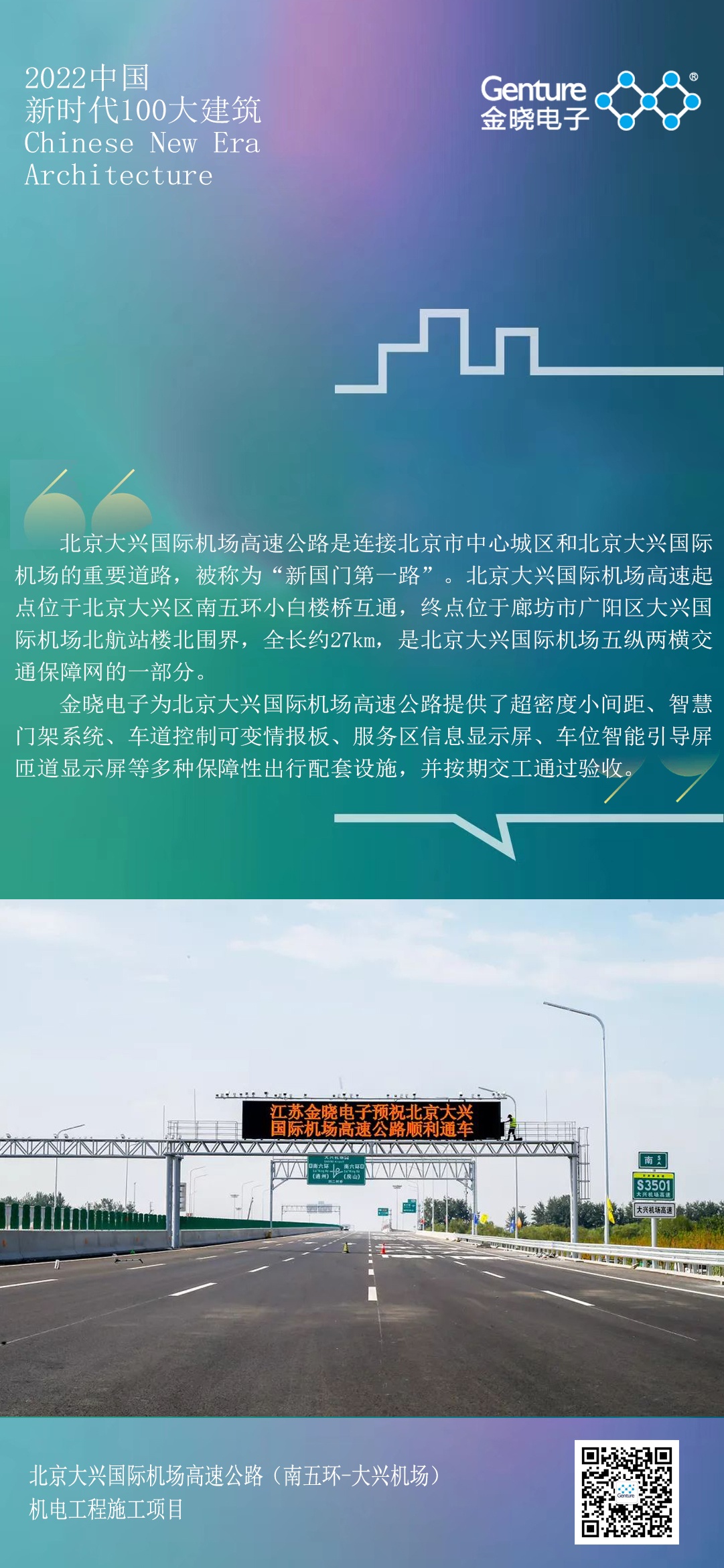 近日,中國科技新聞學(xué)會(huì)在京發(fā)布“2022中國新時(shí)代100大建筑”,旨在通過新時(shí)代100大項(xiàng)目,回顧新時(shí)代中國發(fā)展的光輝歷程,展示中國建造的實(shí)力和在世界范圍內(nèi)愈加強(qiáng)大的品牌影響力。金曉電子有幸參與交通工程(京新公路)、交通樞紐(北京大興國際機(jī)場)。目前,金曉電子在實(shí)現(xiàn)智慧出行信息服務(wù)智能化全程覆蓋的進(jìn)程中不斷展現(xiàn)企業(yè)綜合實(shí)力,助力建設(shè)智慧道路,展企業(yè)在新一代國家交通控制網(wǎng)發(fā)展中的整體實(shí)力,為凝聚中國公路建設(shè)奉獻(xiàn)企業(yè)自己的能量。